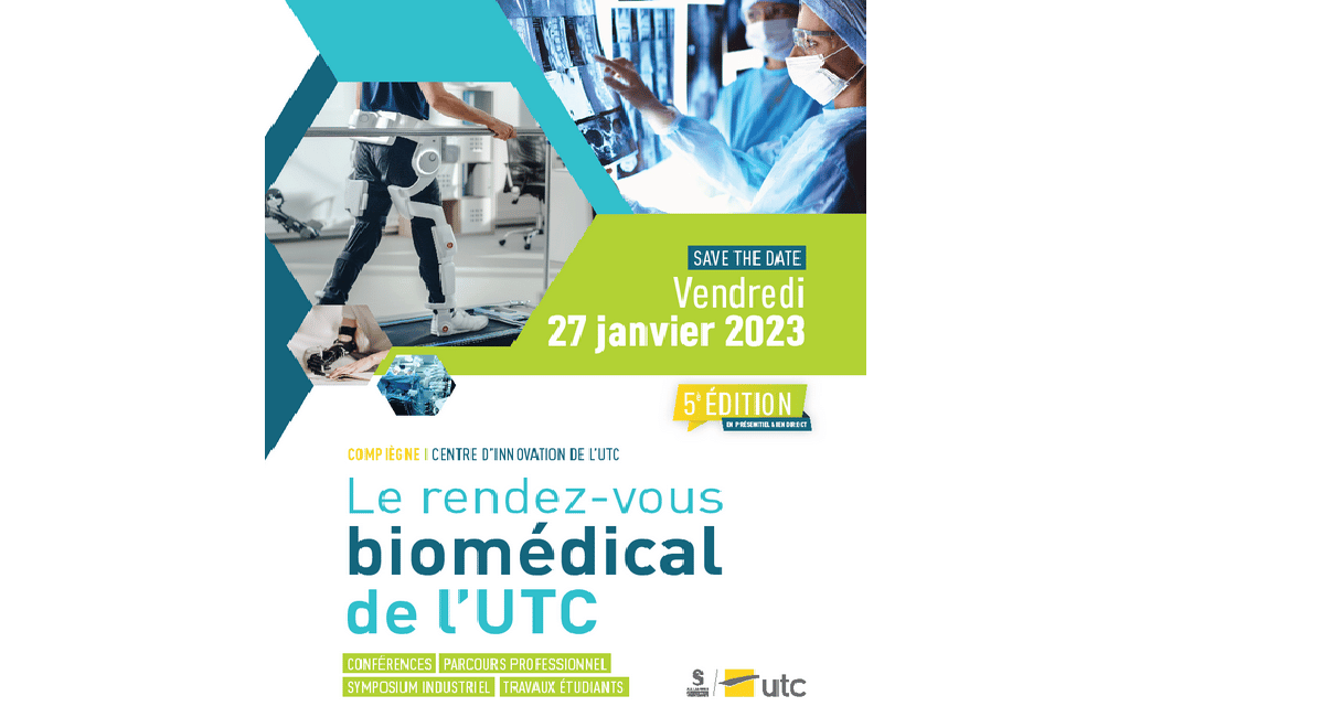 [2022-11-29] (Accès libre) L’Université de Technologie de Compiègne (UTC) organise son 5ème « Rendez-vous biomédical » le vendredi 27 janvier 2023, en présentiel au centre d’innovation de l’UTC et en direct.